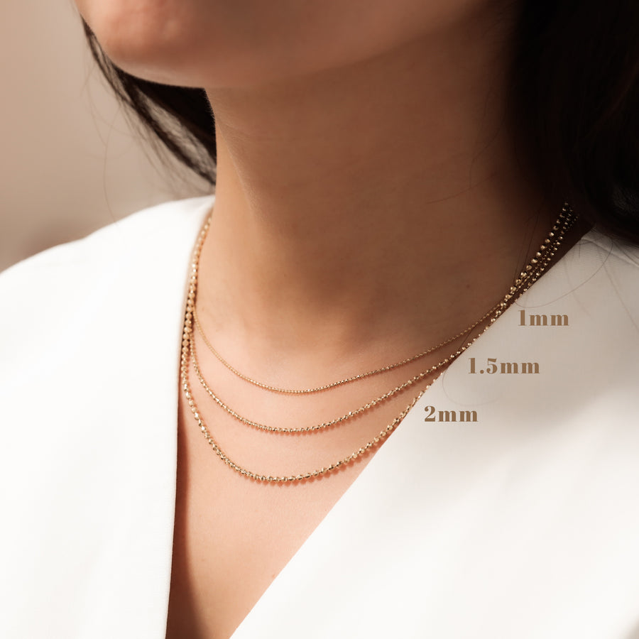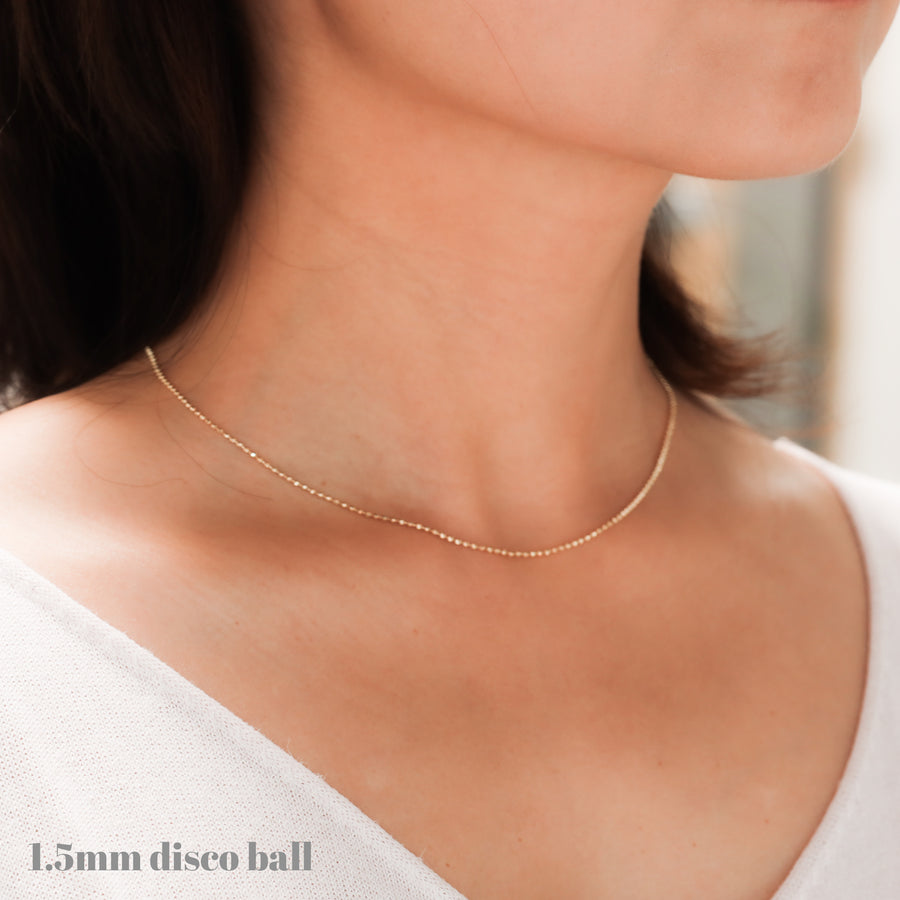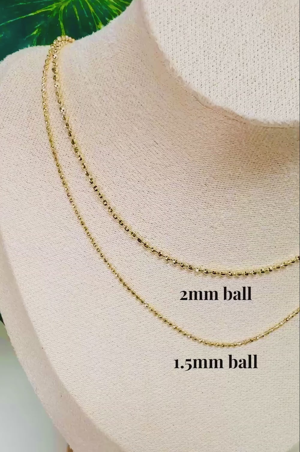 14K Solid Gold Disco Ball Chain | Ball Dainty Chain | 1mm, 1.5mm, 2mm Gold Ball Necklace