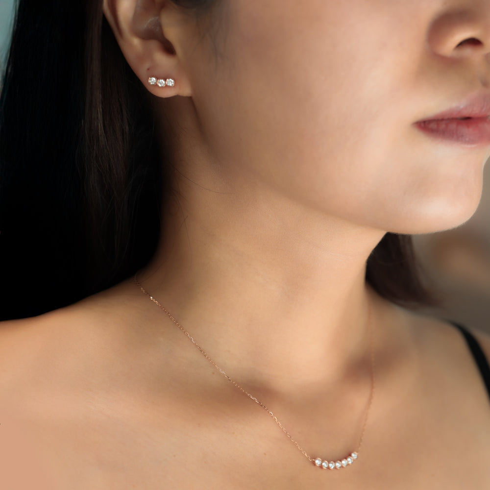 Curved Bezel Diamond Cluster Necklace – 7 Bezel Lab Grown Diamond Necklace in 14K Gold