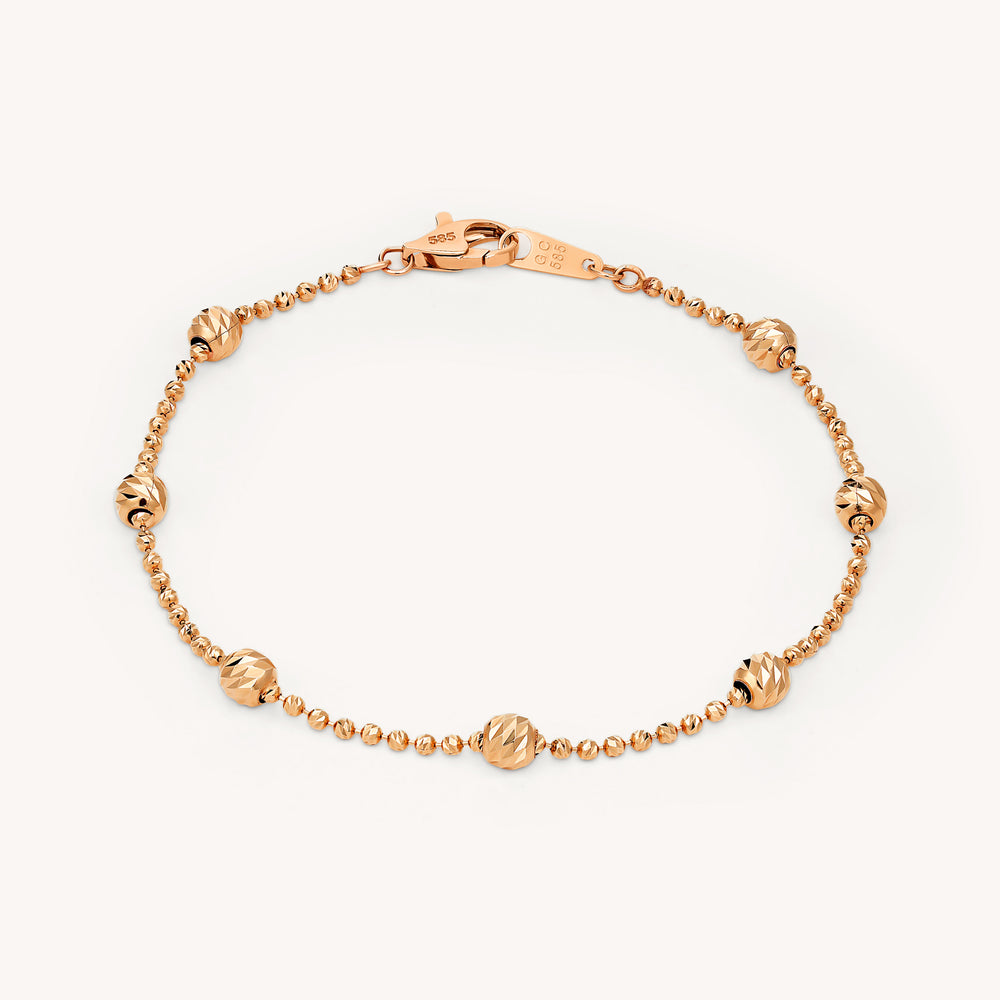 Beaded Bracelet with Diamond Cut / Disco Ball Shape 14K Gold Bracelet (1.5mm - 2mm)