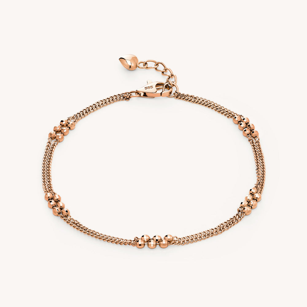 Flat Beads & Chain Double 14K Solid Gold Bracelet