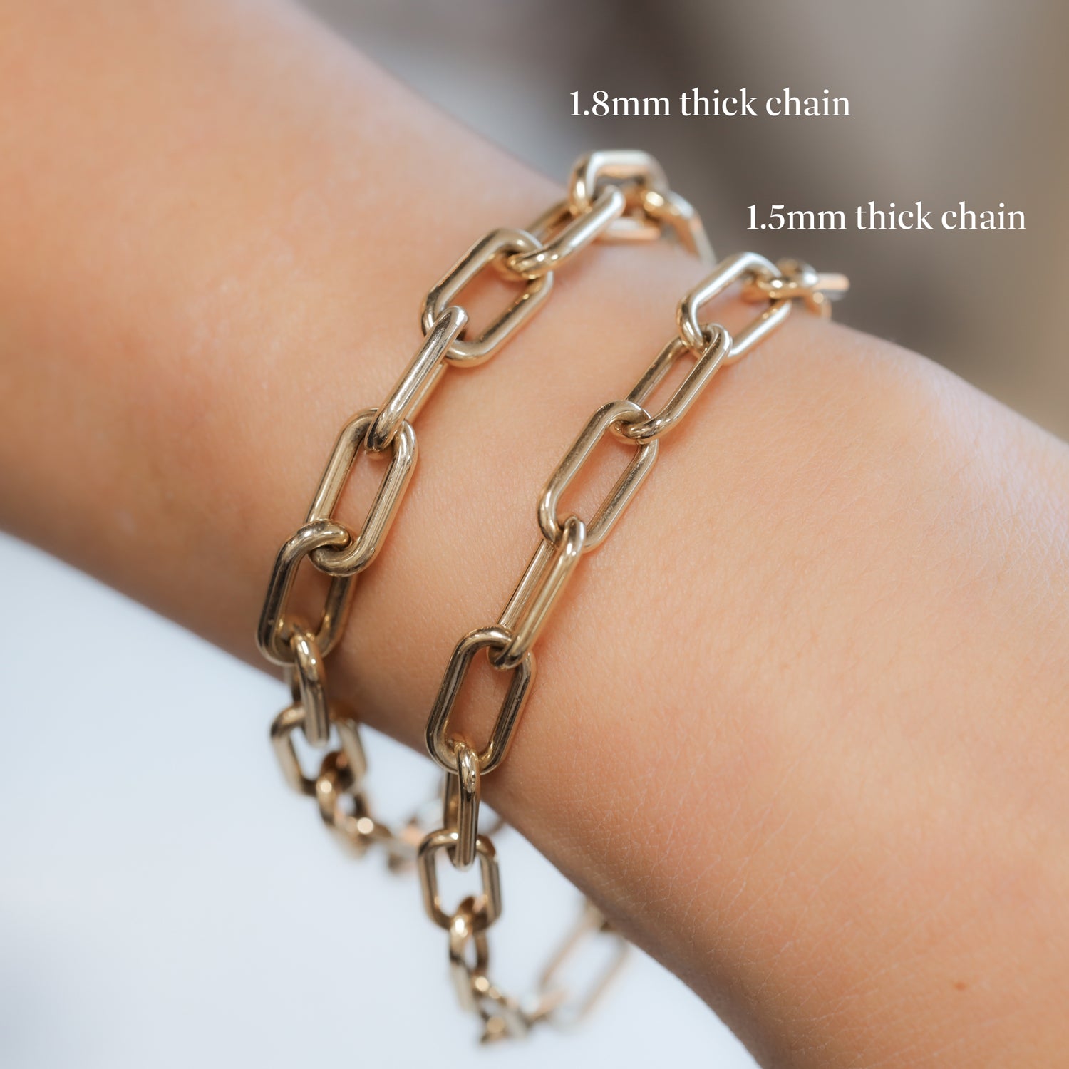 Chunky Chain Paperclip Bracelet 13mm wide, 1.8mm thick 14K Solid Gold