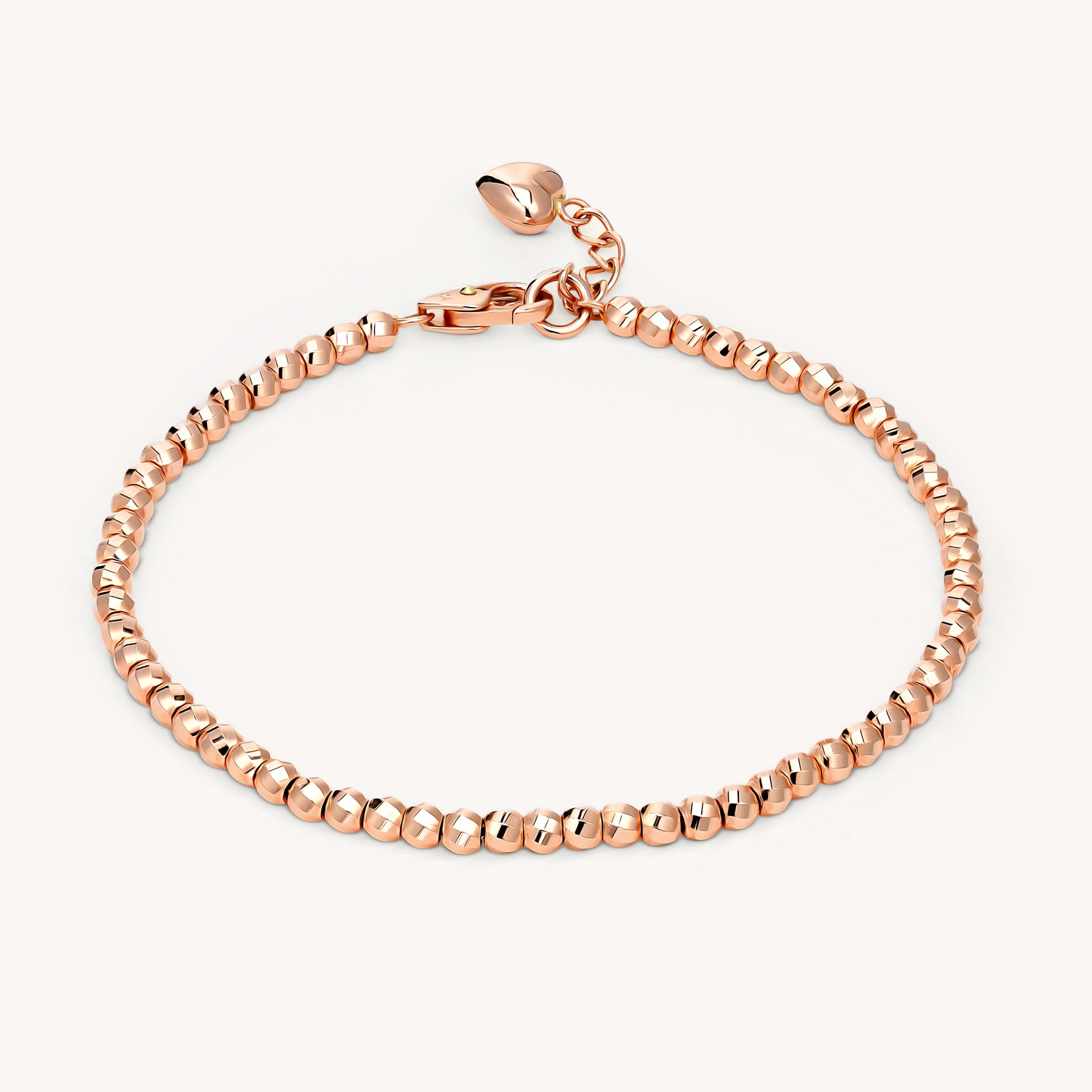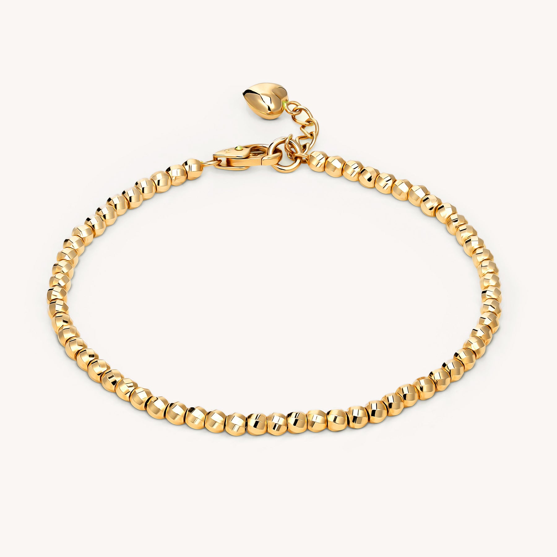 Beaded Bracelet with Tornado Cut Shape in 14K Gold - 3mm (Optional Heart Charm)