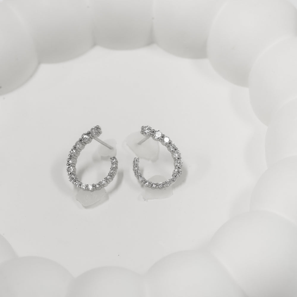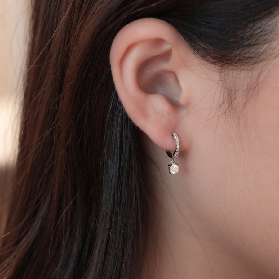 Dangling Drop Diamond Huggie Hoop Earrings – 11mm Diamond Hoops with Dangle Charm