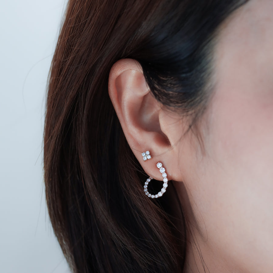 Diamond Cluster Huggie Hoop 13mm Earrings – 14K Gold Huggies, Single or Pair