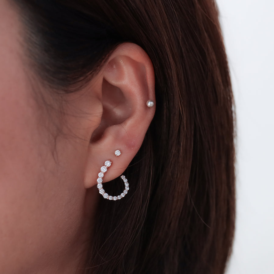 Diamond Climber Stud Earrings – 14K Gold Bar Climber Studs (Single or Pair)