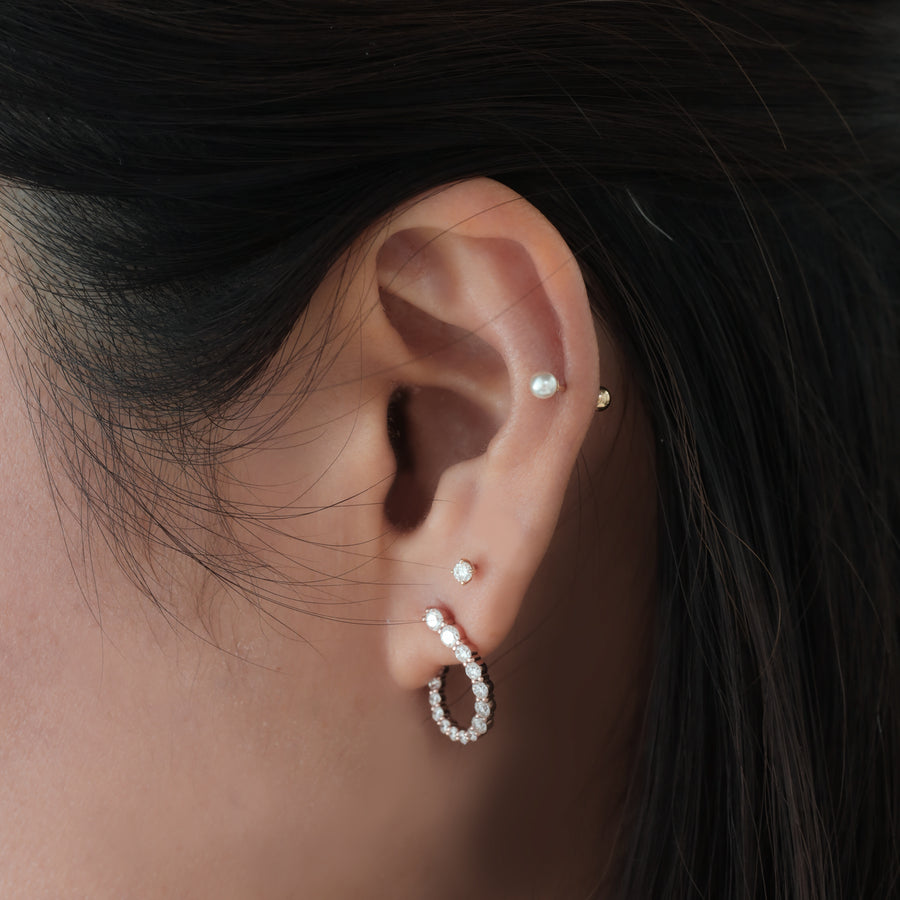 Diamond Beaded Huggie Earrings – 14K Solid Gold Ball Hoop Earrings