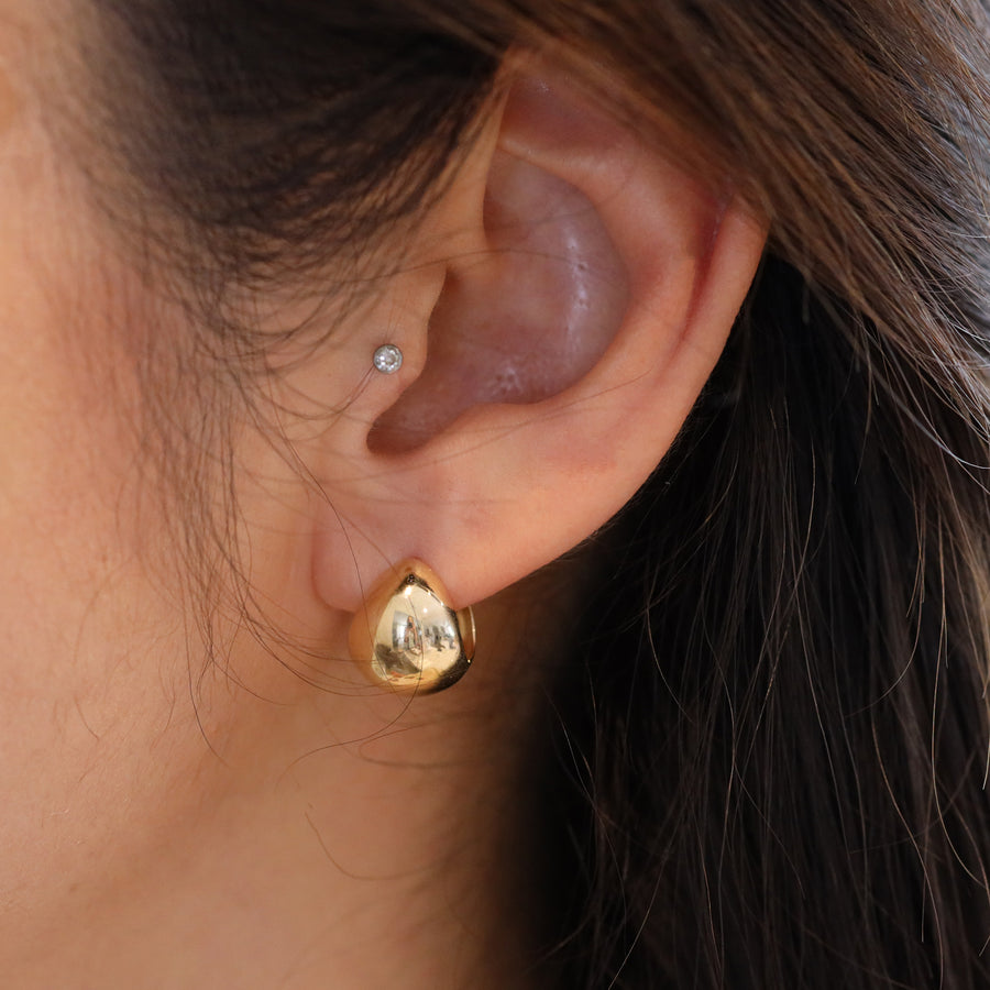 Bold Teardrop Hoop Bold Chunky Huggie Earrings in 14K Solid Gold