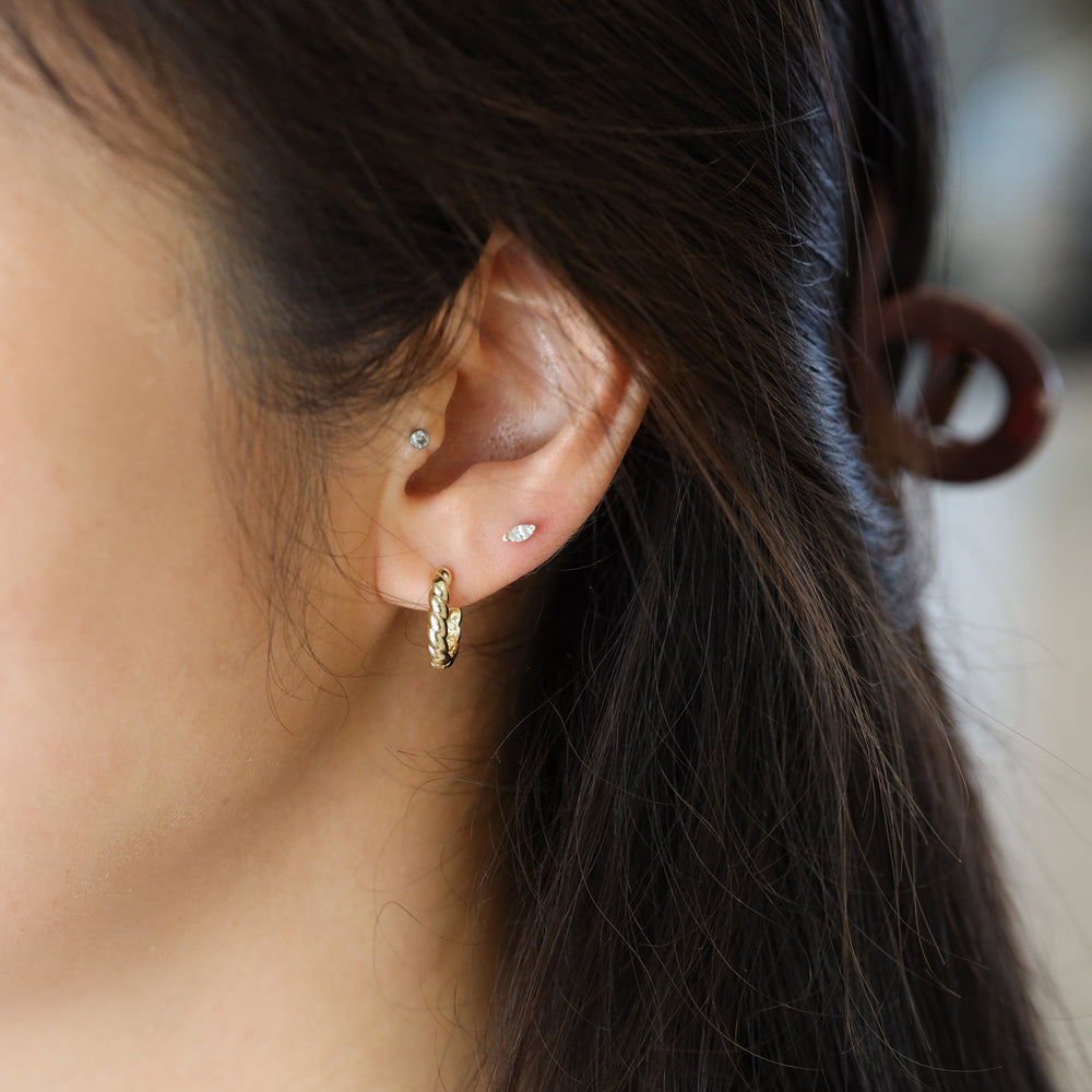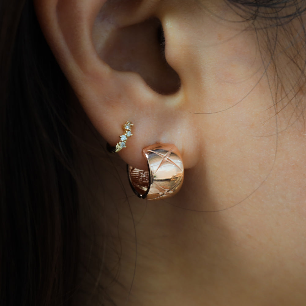 Quilted Huggie Hoop Earrings Medium – 14K Gold Hoop Earrings with Statement Quilt Pattern