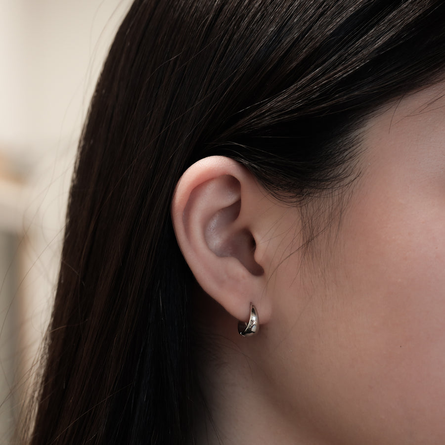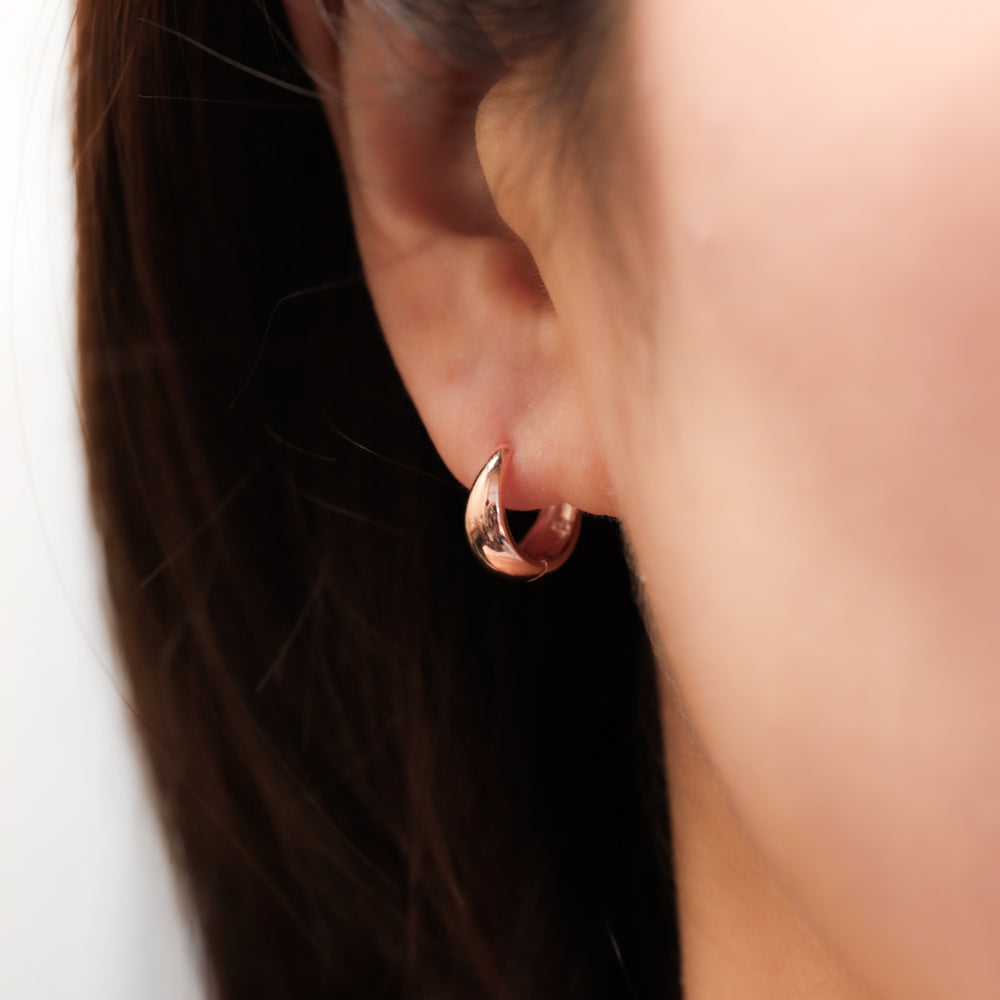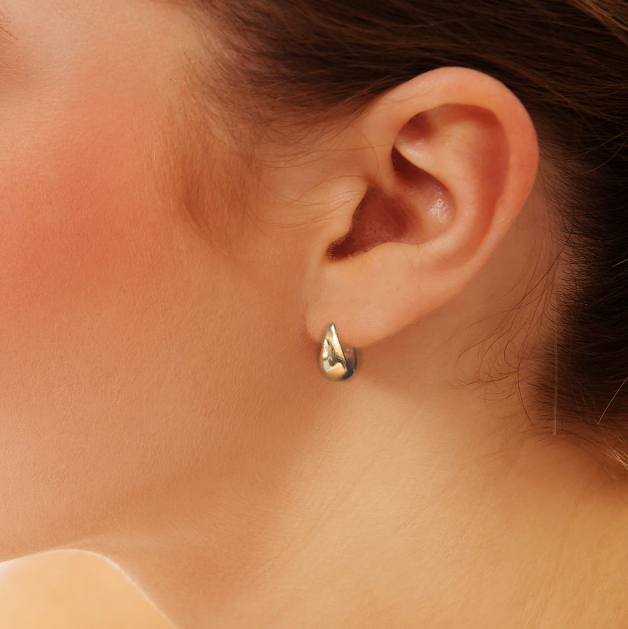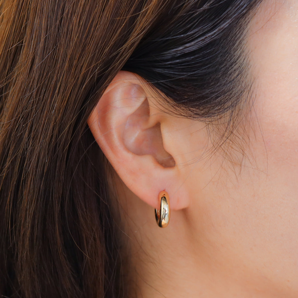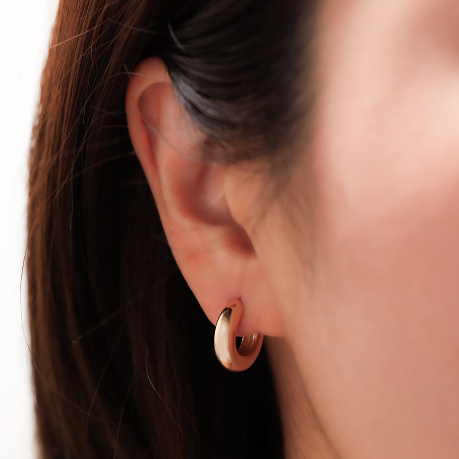 Domed Huggie Thick Chunky Hoop Earrings in 14K Solid Gold Small