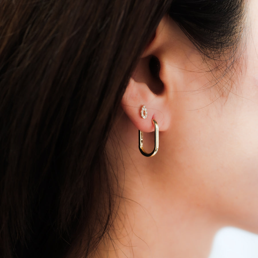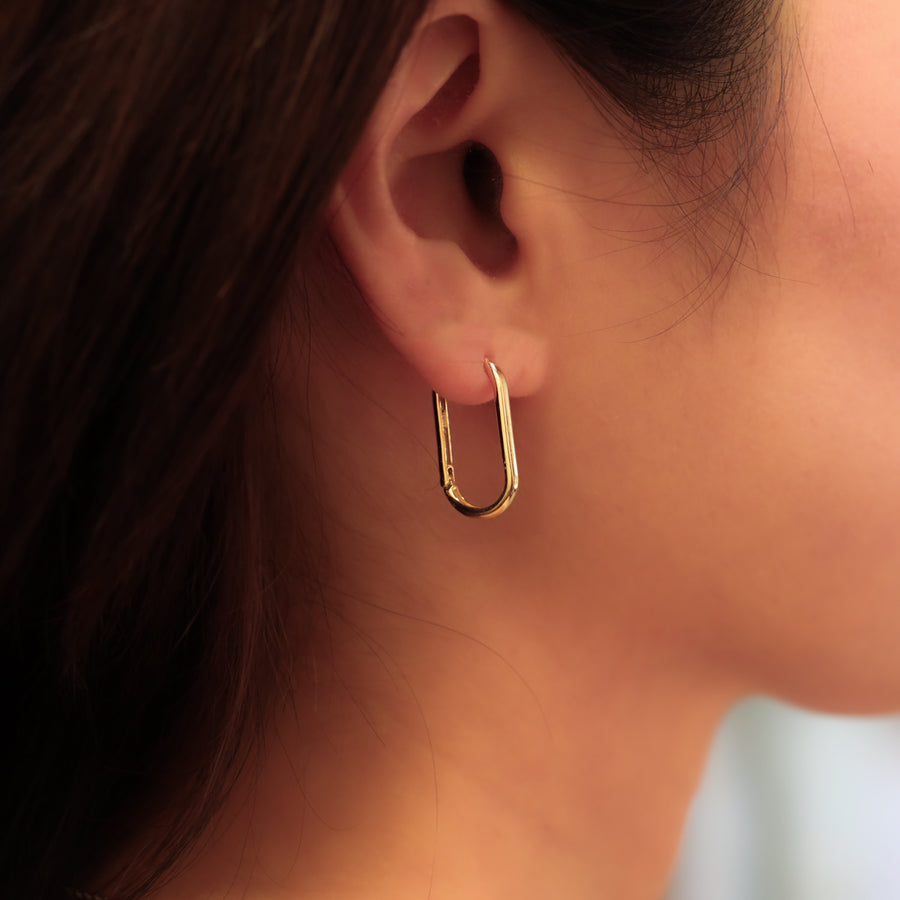 Rounded Rectangular Chunky U-Shaped Hoop Earrings Small (15mm) – 14K Solid Gold Thick Paperclip Hoops