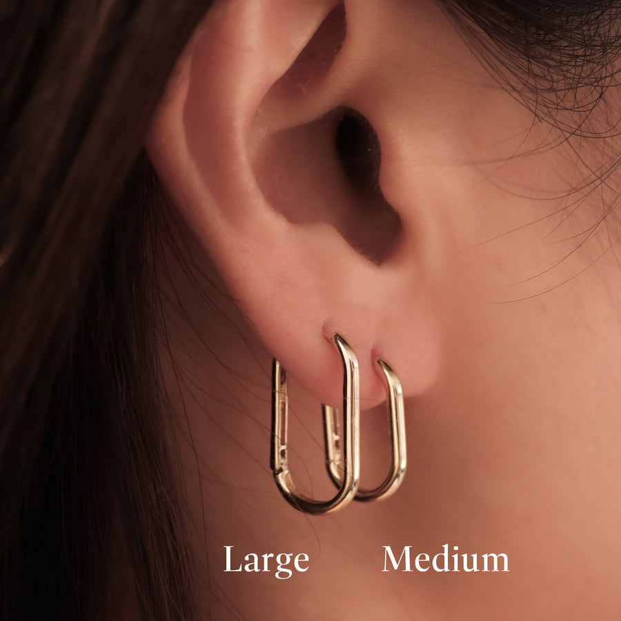 Rounded Rectangular Chunky U-Shaped Hoop Earrings Medium (20mm) – 14K Solid Gold Thick Paperclip Hoops