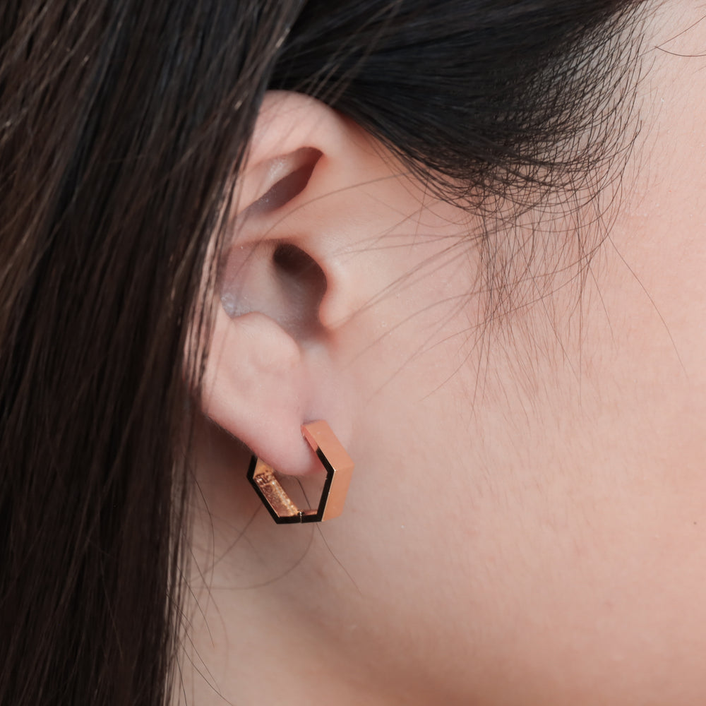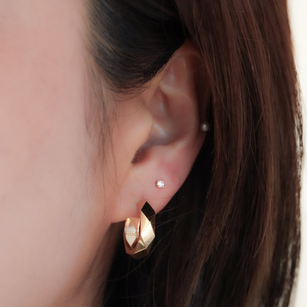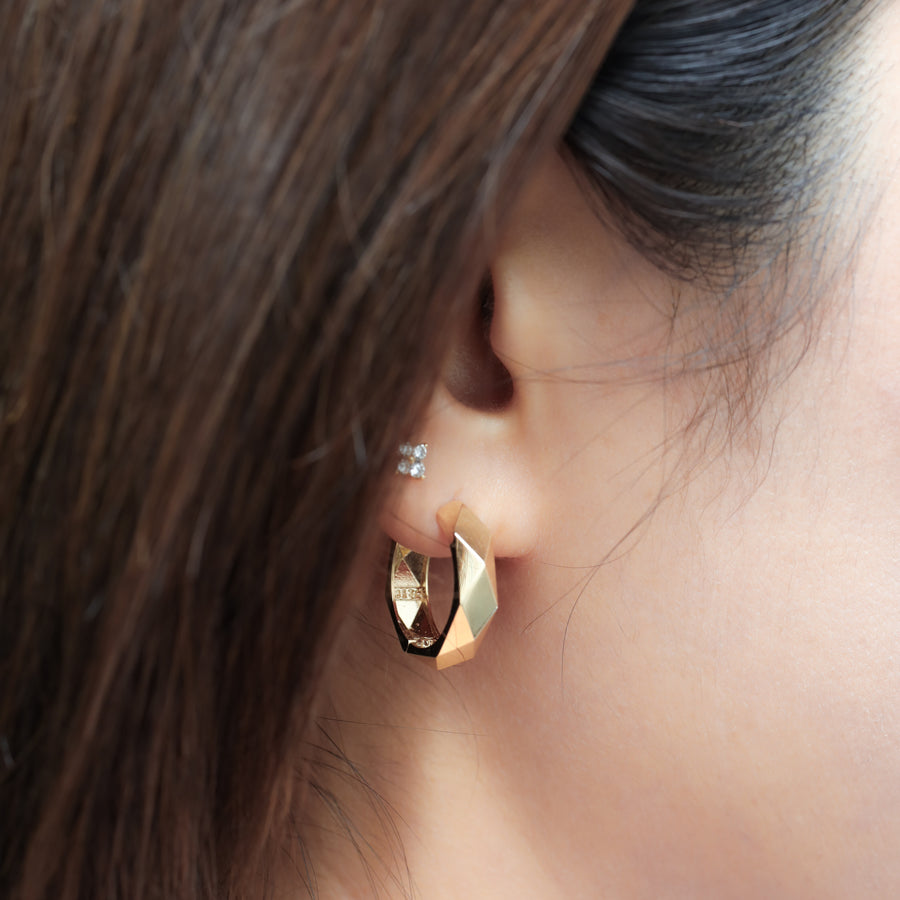 Pentagon-Shaped Huggie Hoop Earrings 14K Yellow Gold