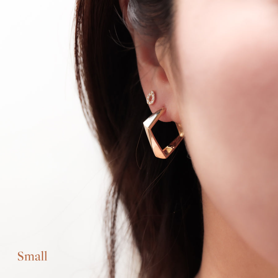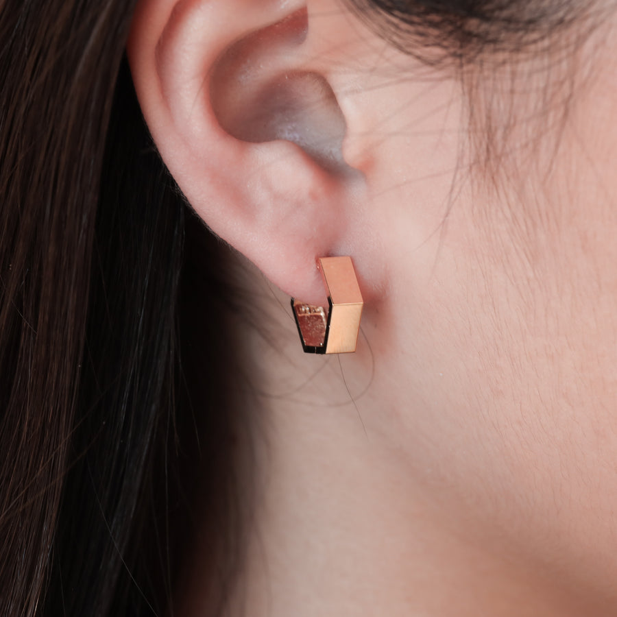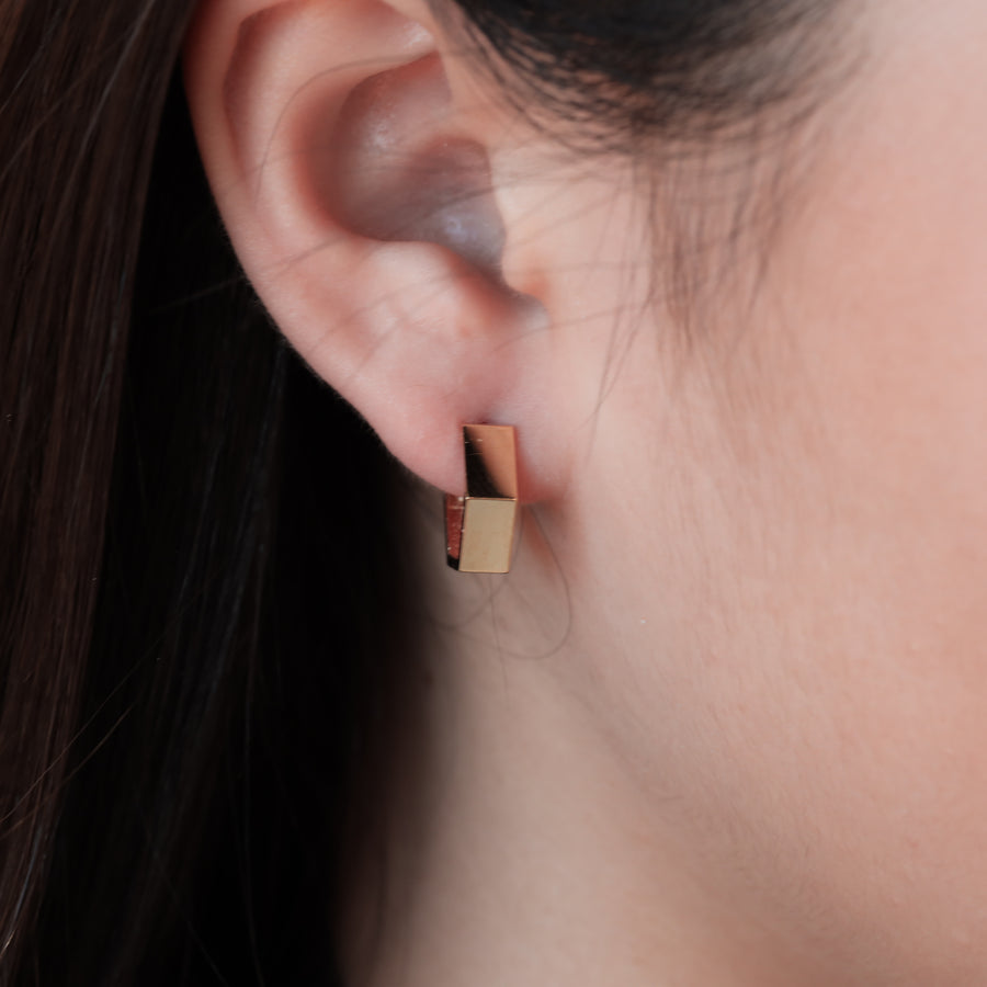 Thick Square Angled 14K Solid Gold Hoop Bold Geometric Earrings