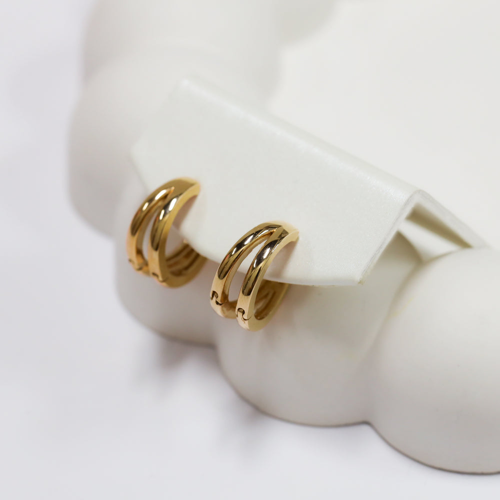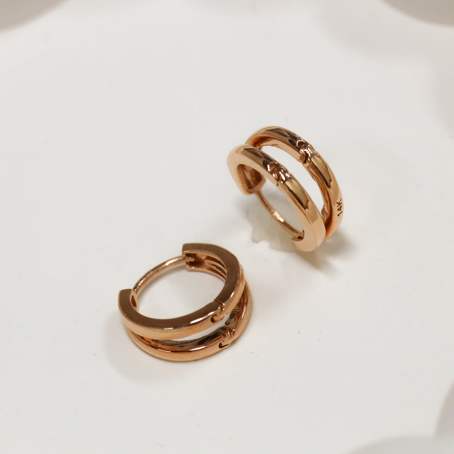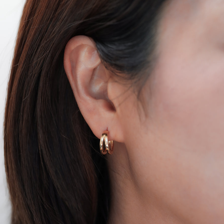 Double Arc Huggie Earrings – 14K Solid Gold Dual Hoop