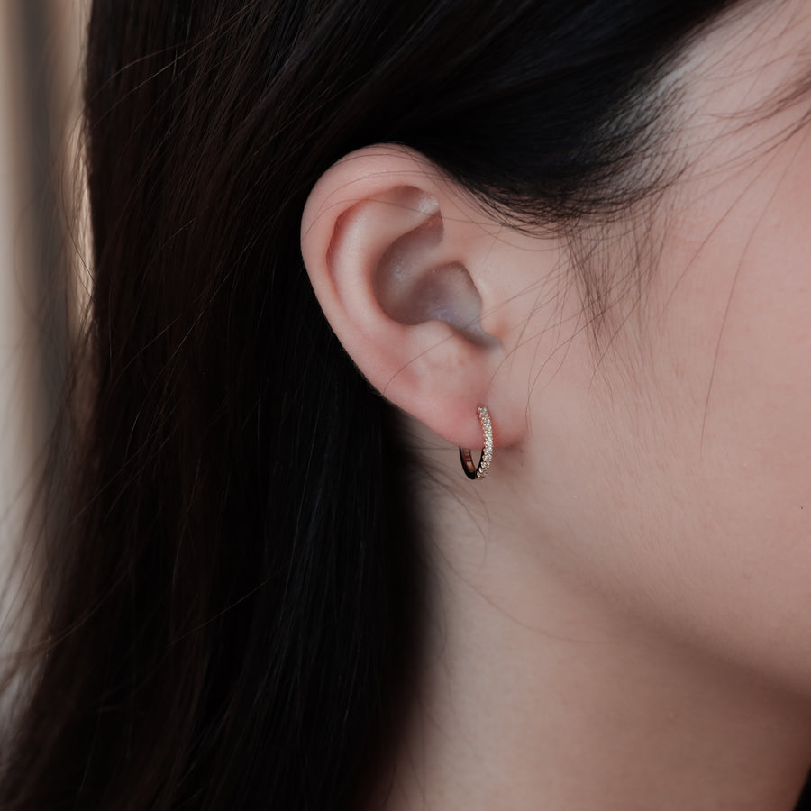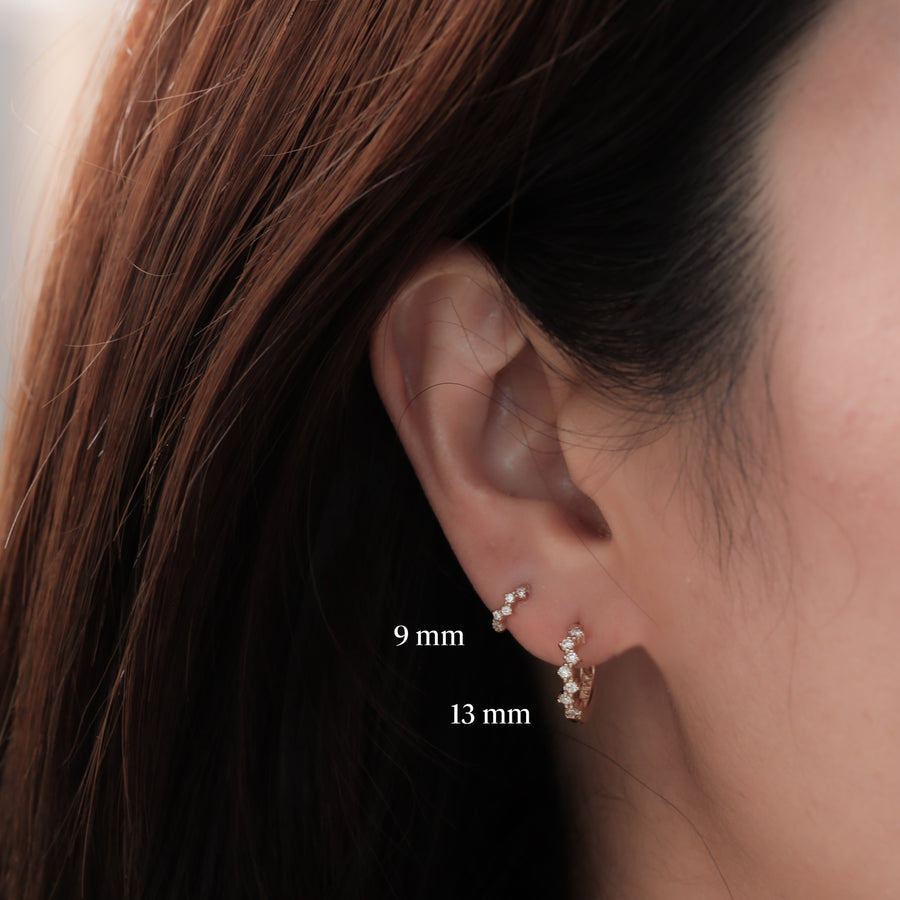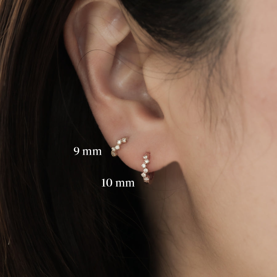 Diamond Cluster Huggie Hoop 9mm Earrings – 14K Gold Huggies, Single or Pair