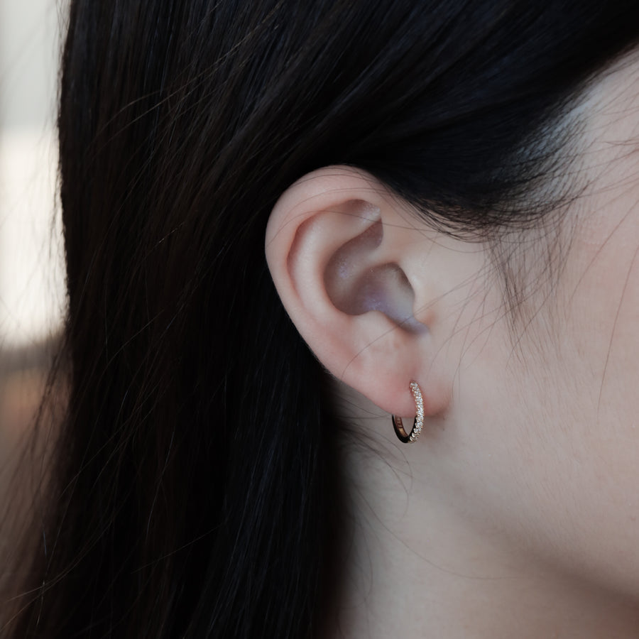 Lab Grown Diamond Huggie Hoop 8mm Earrings – 14K Gold Single or Pair