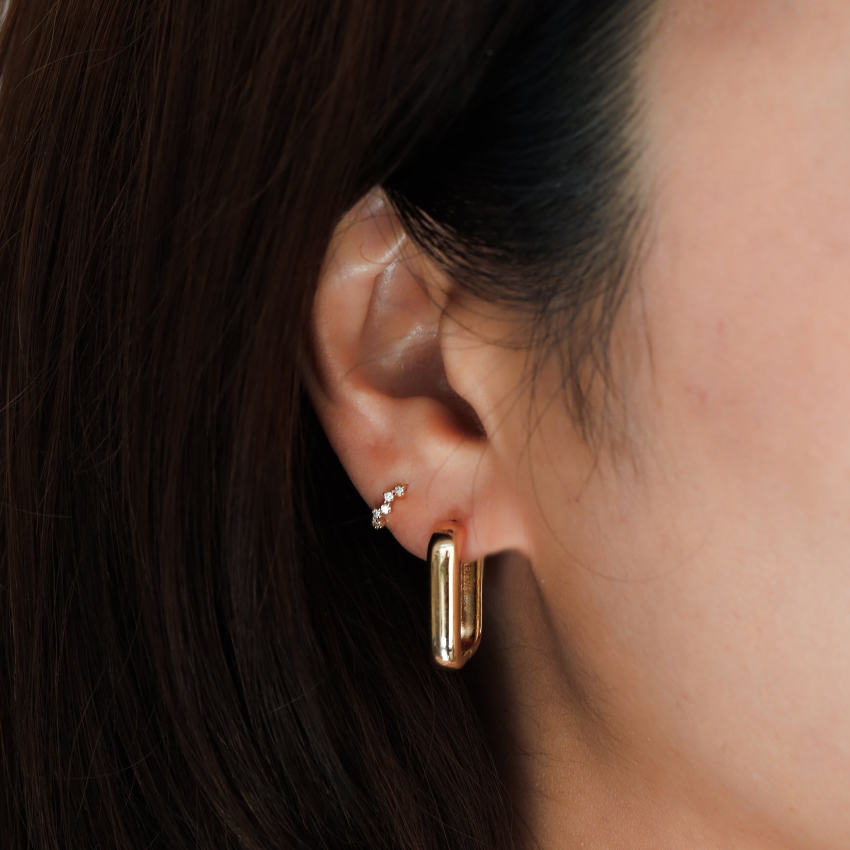 Bold yet minimal, these Chunky U-Shaped Hoop Earrings feature a thick, rounded rectangular silhouette—reminiscent of a sculptural paperclip form. Crafted from solid 14K gold, their polished surface and modern shape make them a standout addition to your everyday rotation. Compact in size but rich in presence, they’re the perfect blend of edge and elegance.