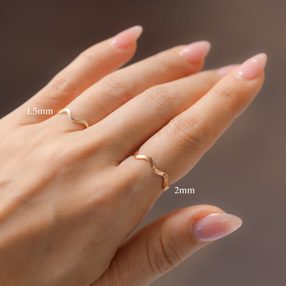 Golden Waves Ring – 14K Solid Gold Wavy Band