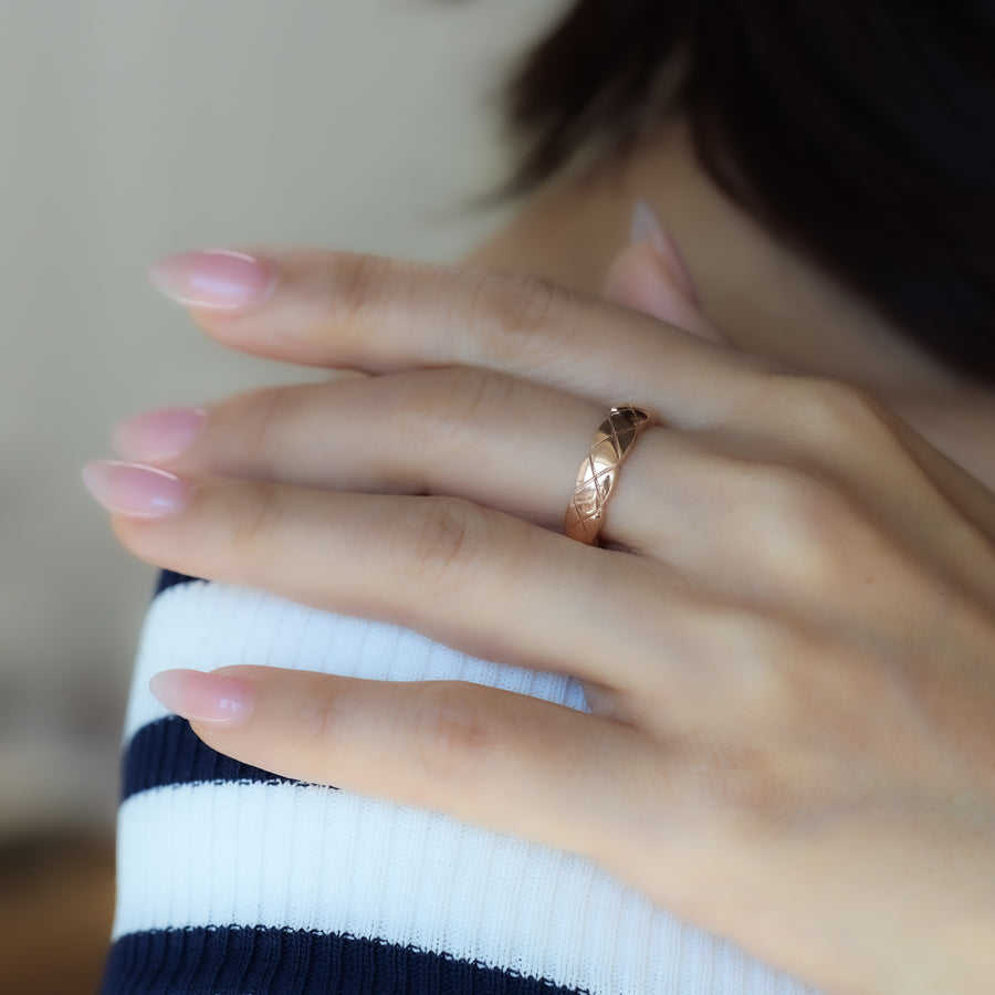 Elegant Quilted Pattern Ring in 14K Gold 5mm