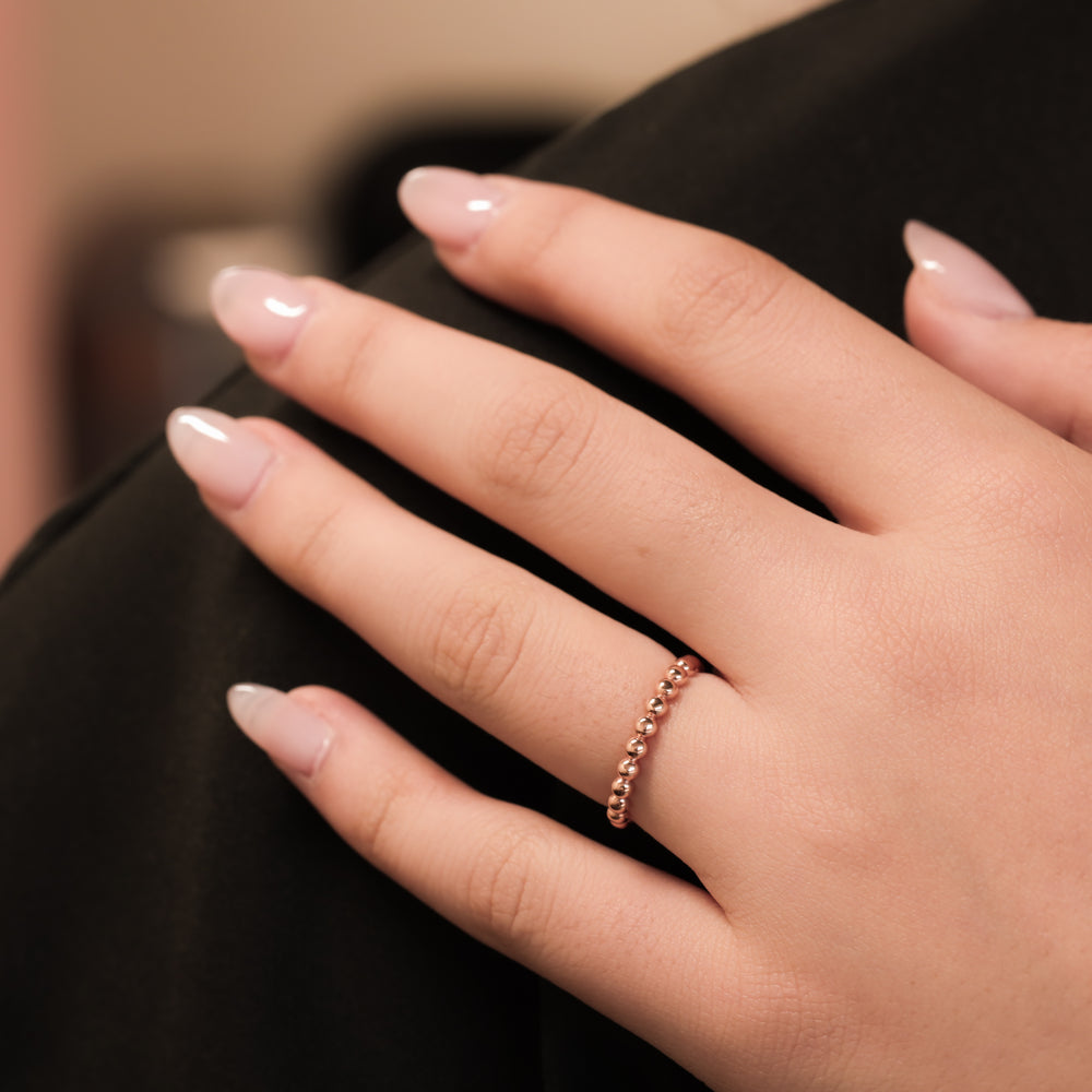 Beaded Stackable 14K Gold Ring (2mm Beads)