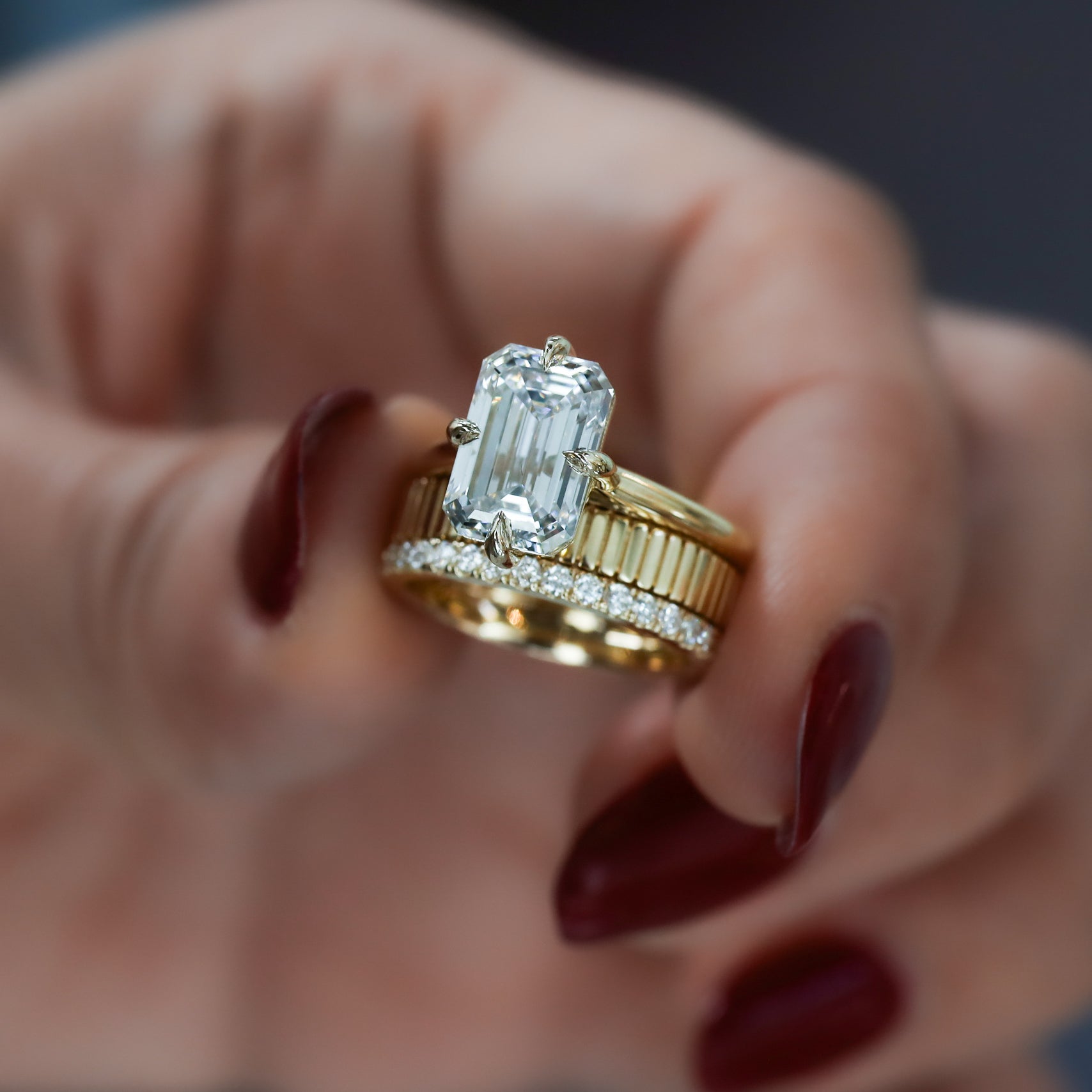 A timeless stacking ring with a fluted, ribbed texture that catches the light from every angle. Crafted in solid 14K gold, this versatile piece is perfect as a wedding band, worn solo for understated elegance, or stacked with other rings for a bold, curated look. Designed for both everyday wear and special occasions.